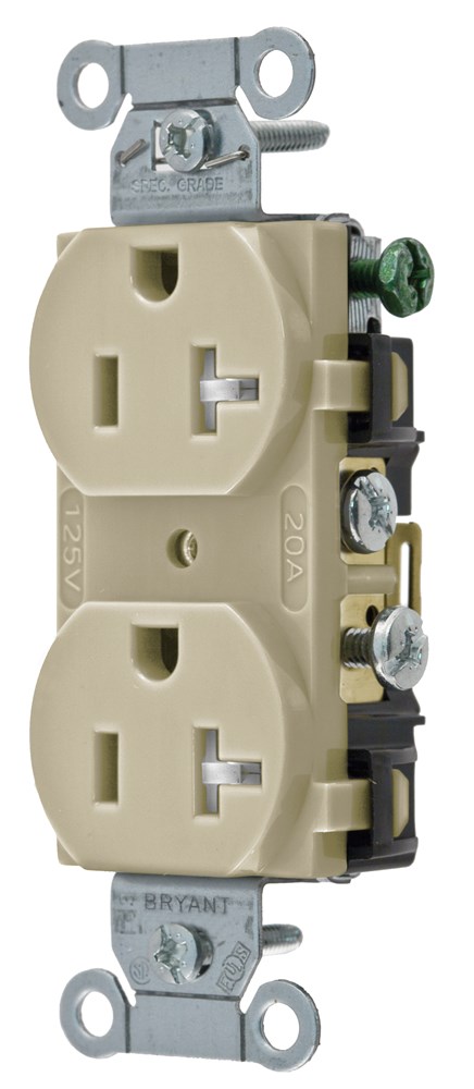 Straight Blade Devices, Receptacles, Duplex, SNAPConnect, Controlled, Tamper Resistant, 20A 125V, 2-Pole 3-Wire Grounding, 5-20R, Nylon, White